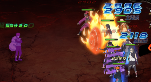 风影:奥义 瞬发 忍术伤害,攻击9体目标消耗80查克拉 (吸血多)