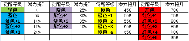 首先,觉醒是目前游戏中唯一可以改变忍者五围潜力的方式,觉醒等级每+1级,忍者潜力提升5%对应表格如下: