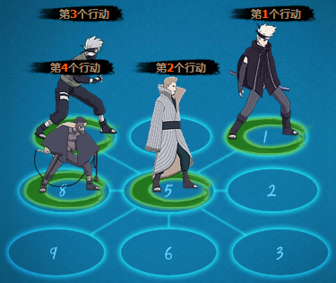 第一回合先不要放技能,运气好了水影普攻10连就能发出大招,第二回合看有没有人被水影的分身炸到,如果有并且是后排的话就用卡卡西去定身。