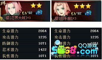 5、基本潜力方面,从收集到的情报中来看,2X忍战小樱跟3X水手樱的潜力相同,不知道这是不是策划跟大家开的又一个玩笑