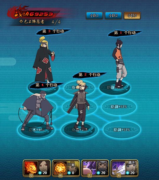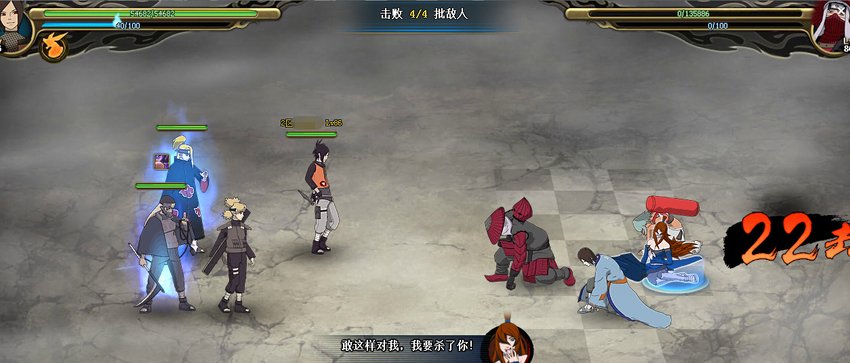 第一回合:就半藏喷毒,迪达拉等点燃后爆炸。手鞠或者迪达拉普攻出连击可以来一套,出不来也不强求,想冲刺分数的,需要刷一下。
