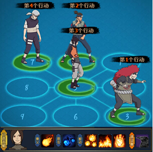 第一回合:如果团藏普攻没有击退胖子,丁座奥义下面或上面的2个暗部杂鱼(具体情况看哪队没有被团藏奥义)