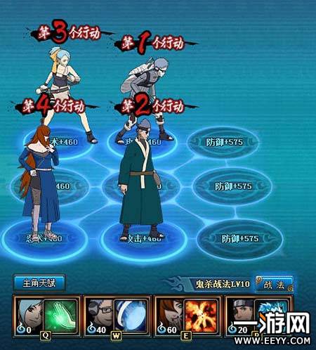 鬼杀阵,长十郎和青要站在第二排,有的玩家喜欢把水影放在第二排,不过这样很不好,因为水影奥义需要60查克拉,在水分身没挂的情况下长十郎不会死,自然可以放出奥义,但是如果长十郎挂了,水影也不一定有查克拉放出奥义。比如遇吸蓝,又或者青用了奥义查克拉不足。