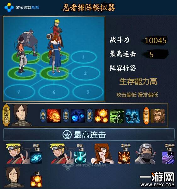 这个应该属于火主的土豪队了,没什么太多讲的,重点在于看准核心忍者去控制就好了。主要针对的就是雷主黑飞队,但是打其他阵容的话需要看操作,还有先攻。