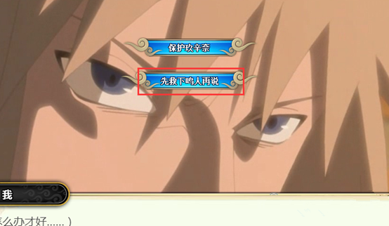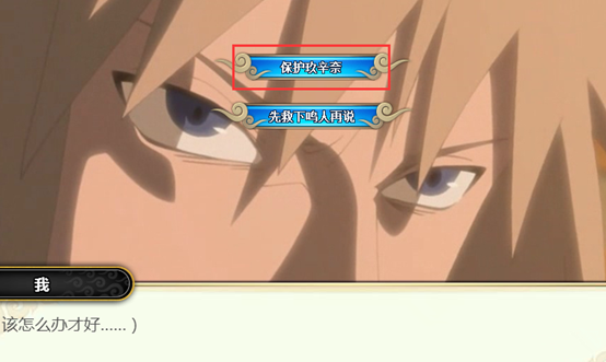 水门认为对方的目的是人柱力,不可能是鸣人,觉得不会对鸣人下手,保护玖辛奈优先。当然这个选项是错误的,bad end,获得卷轴2个,羁绊值5。