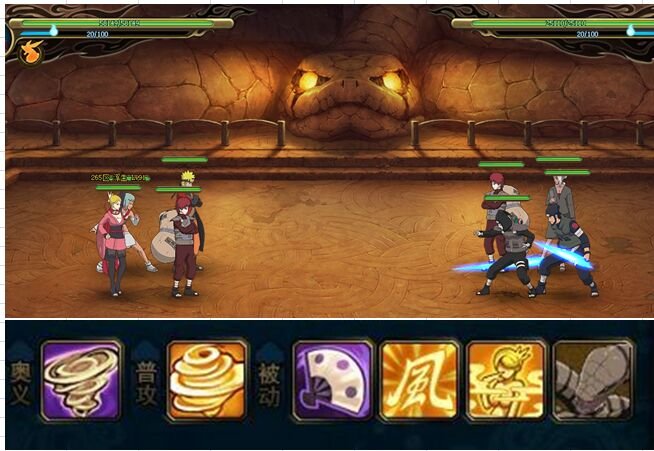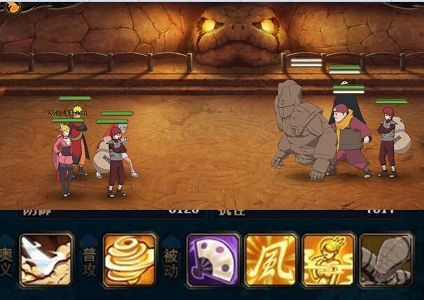 第一回合,伊鲁卡抗住一刀后点技能骗雷主封穴,鸣人再抗一刀。我爱罗奥义,风主技能给没目盲的。