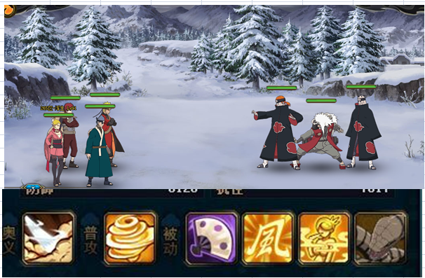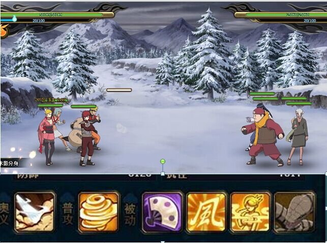 鸣人 风主先进场,让分身套盾。