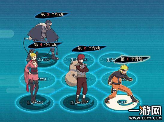 第一回合 比较看脸的一回合,四代不要攻击到四个角色不然重来,半藏奥义被动清楚目盲鸣人普攻或者回合结束前小南必须被连击否则重来。