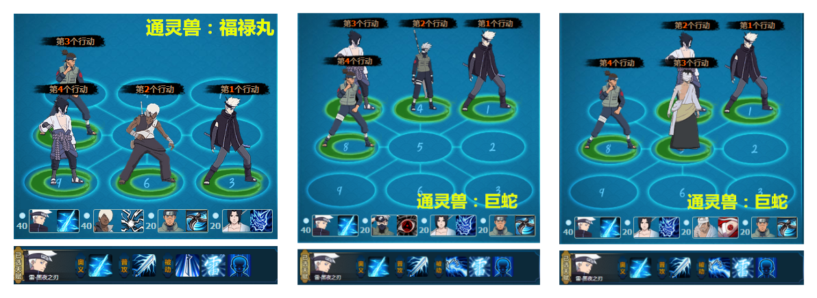 阵容解析 这 三个队伍都是属于同类型的队伍,但又是各有优点长处的。三队伍的共同特点是超高COMBO输出点杀对方忍者,阵容1相对来说比较适合有先攻优势的,毕竟自 带被动结界;阵容2的优势在于对战高控制队伍,他的镜反往往可以起他逆转局势的作用;阵容3是我比较喜欢的队伍了,超高COMBO输出,有麻痹有点燃有定 身,更重要的是团藏的奥义还可以给队伍保证生存能力,比较全面的阵容。当然根性雷如果没有一号位打断技能的话,是很怕五尾的,所以各有千秋咯。