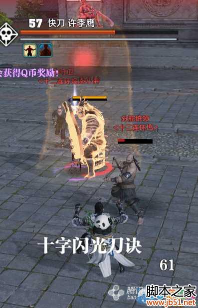 因为真气紊乱无法使用轻功,只能当那个会移动的内圈靠近BOSS的时候,使用自替身(自替身在使用后角色会消失一段时间,在这一段时间是不能对你造成伤害的)。