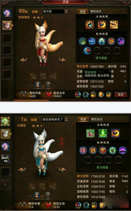 接下来是狐媚,说真的,狐媚妹子刚出不久……他可是好多收集控喜欢的宝宝,因为变异后全身雪白很可爱!放大后还能看到他卖萌。这2只狐媚都是老区的,一年前,一个是变异前,一个是变异后。