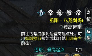 答:引导任务:八荒剑秀 熟悉重阳糕种类和做法,并尝试制作一个,把重阳糕和酒带回师门孝敬长辈。 每日任务:重阳登高 每天可接到一次登高任务(共可接7次),跟随丁灵琳在各门派地图上登高。 每日答题:武林掌故 每日可到掌门处进行武林掌故问答,... >>详细