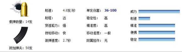 相较于传统的沙漠之鹰,DE虎鲨在威力和弹夹量上都有突破,配合狙击步枪将有不错的效果。使用DE虎鲨要尽量追求爆头,它的精准度和威力都足以媲美步枪。