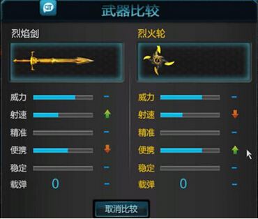 我们再来与前段时间火热的烈焰轮对比,从数值上我们看到威力上两者一样,攻速上烈焰剑要更快一些,便携性上烈焰轮更胜一筹,总的来说两者各有千秋。