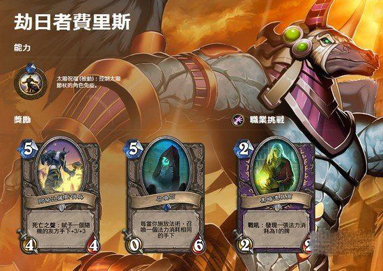 术士的试炼是这个BOSS,你会获得一套恶魔术,从低费到高费恶魔都有,大王也有。你套牌中有腐蚀术,前期抓到就可以解决权杖。如果没有就要依靠烈焰小鬼或者力量代价了。在你控制权杖的情况下,你的术士抓牌是不掉血的,同理类似烈焰小鬼,深渊领主这样战吼打自己血的随从,也会免疫掉。所以尽量多补充手牌和铺场,合理使用力量代价。