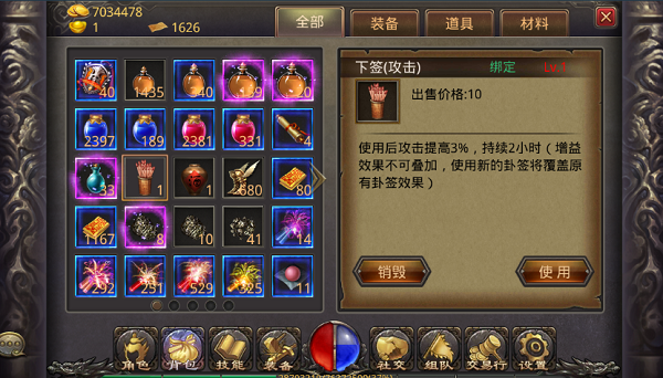 暂时且不说多次算卦的成本问题,算卦本身能够提供我们的奖励是丰厚的,小编亲测多次算卦之后,使用卦之后奖励的属性虽然被覆盖了,但是物品奖励还是客观的,高级黑铁矿石,幸运水,高级矿石这些高级物品都是可能出现的奖励,所谓投入越高,回报就会越多。
