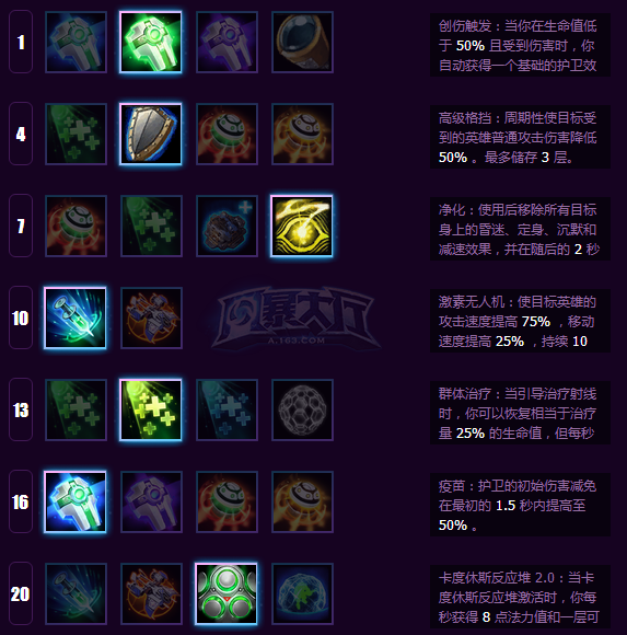 大招视阵容和地图需求来选择,16级疫苗对抗高爆发,护盾序列器则用来对抗AOE和消耗。