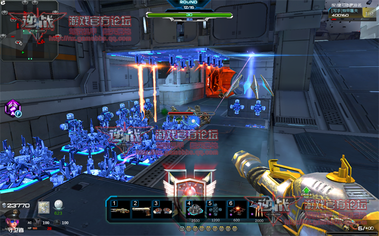 纪元之光塔防模式极光子弹模式单个弹夹40发子弹,极光榴弹模式单个弹夹10发极光弹,无限极光榴弹换弹。能量槽蓄满,可按V键释放纪元火卫,释放纪元火卫时,仅可使用极光榴弹,纪元火卫消失才可切换极光子弹模式。
