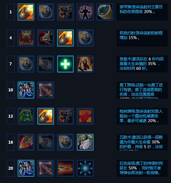 第五层:强化剂和枪林弹雨都可以,你Q不太容易被打断就枪林弹雨,如果你Q经常被打断就用强化剂可以让你在Q的时候更加飘忽的走位。