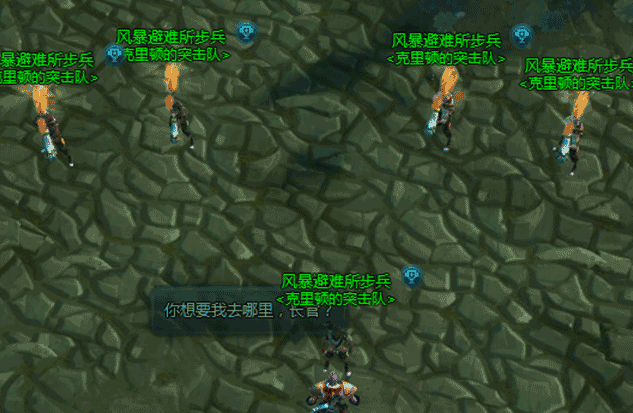 该副本主要是以防守为主要任务,进入副本后跟着引导NPC我们来到了防守地点,之后与指挥官对话,指挥官会给我们5个NPC协助防守。