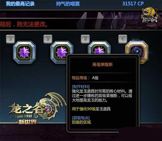 -掉落奖励:A级技能纹章金属板、90A级龙玉、高级莱维斯[用于龙玉强化11、12阶段]、特级宝石、A级武器/防具、斯派拉;完成随机活动有可能获得派力斯/科玛装备