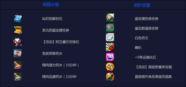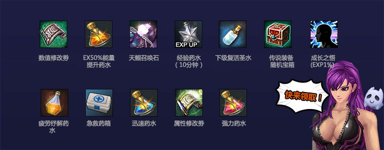 以太力支援箱子、斗志魔核箱子、疲劳药水、经验药水、新消耗道具