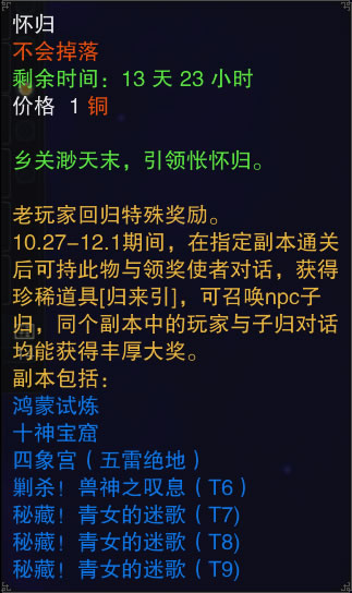 持有“怀归”下副本有额外奖励