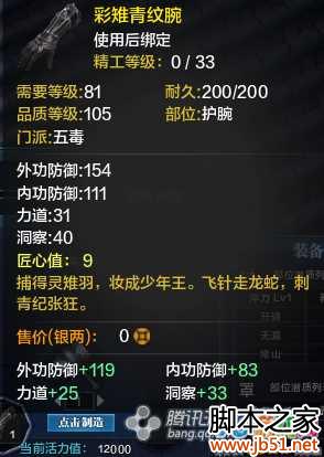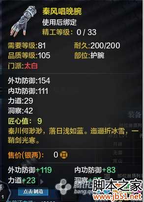 以上就是小编给大家带来的天涯明月刀全职业T2金装护腕制作材料属性介绍的全部内容了,希望大家喜欢,祝大家游戏愉快!更多实用攻略,更多最新消息请继续关注JB51!