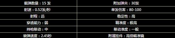 枪械缺点:在穿射方面表现很弱,其次就是装弹时间较长。