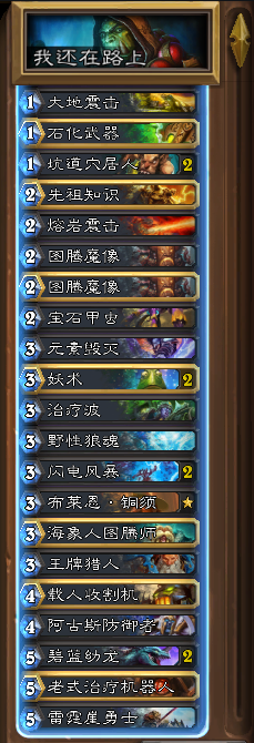 最近也流行一套以这个坑货为核心的过载速攻萨,但终归,由于萨满的不稳定性,那套牌组能否长远,还是值得商榷的。接下来为大家详细介绍我这套融入探险家新卡的萨满卡组。