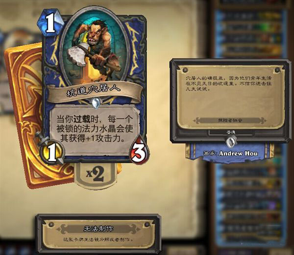 但是由于这张卡的属性所致,并没有像浮龙和北郡那样好用,但是和肉僵相比,我还是喜欢坑道穴居人这张牌,因此我经常把这张牌叫做“坑货穴居人”,因为如果一费起手抓不到这张牌真的会被坑。