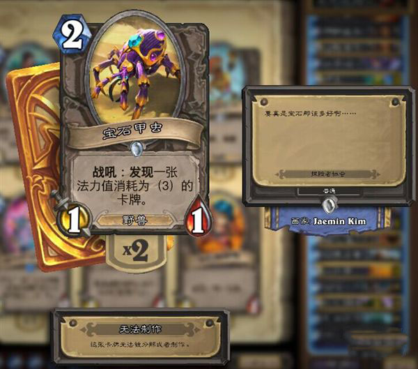 这两个无论去掉拿个都很遗憾,因为在手牌不好的情况下,2费摇图腾,3费的海象图腾师可以弥补场面。而宝石甲虫也相当于2费摇了一个1/1图腾,3费一张其他牌。总的来说各有千秋,尤其是在铜须在场的时候,两张牌也有不一样的作用。因此各带一张,仁者见仁智者见智吧。