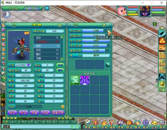 这是我最开始的龙女,功防1524,速度1500.......
