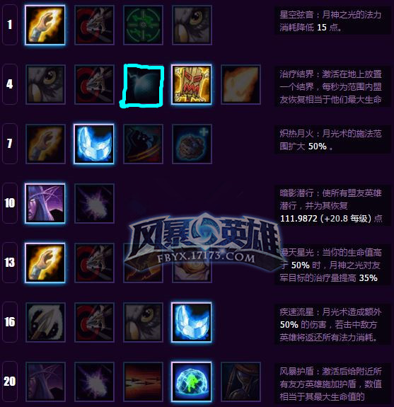 Level 20 风暴护盾 该天赋增加友方的生存能力,在团战时开启可以吸收大量伤害。