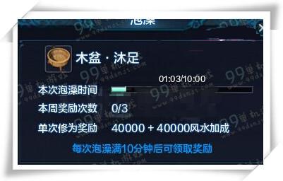 您可每周三次前往澡盆泡澡满10分钟。获得大量修为。