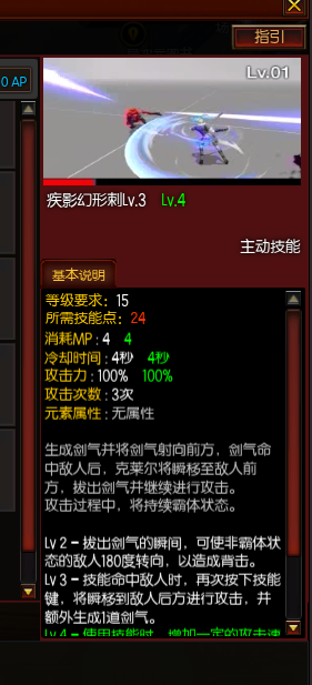 这个极境新图面前必须满啊、LV4的减CD5s很强大的存在、基本每次TAB都会刷新3个技能、叛逆、太刀回旋和千幻、叛逆可是直逼50大的伤害、别人用一次叛逆CD好了、你已经用了2次了、相当于两次50大,可谓吊到不行、在极境之中、战力没达到秒天秒地秒空气的时候、打着打着突然发现CD全部没好、这是一个非常蛋疼的事情、连招连着正爽呢、突然就萎了、是男人都不想吧、特别是极境长时间秒杀的时候、shift又不能支撑、千幻CD又没好、咋办捏、只能交学费了这时候你拼命布武攒好TAB一放、千幻就好了、咋又可以继续奔放了你们说是不是、总的来说这技能也是克莱尔核心、需要刷图有效率有速度就点、如果不在乎刷图时间想等CD的可以不点