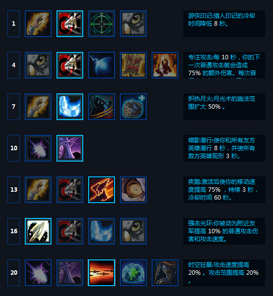 游侠印记:最常用的减天赋的CD,不管是输出还是辅助都能用得上。