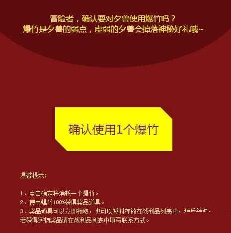 5、所有爆竹必须在2月2日24点前使用,2月3日之后所有爆竹将无法使用,但爆竹战利品列表中的道具仍可以领取。