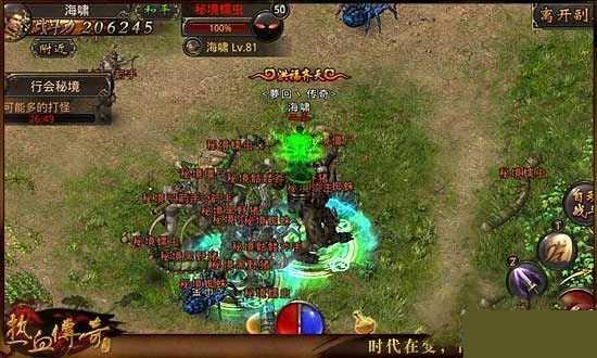 开启行会秘境活动后,限时30分钟内,行会成员可自由进入行会秘境击杀怪物获得奖励。活动时间内,行会秘境是可以自由进出的,退出秘境也可以重新进入。在行会秘境中,有秘境蠕虫、秘境僵尸、秘境弓箭手、秘境蜘蛛、秘境黑野猪和秘境骷髅斧手等不同的小怪。由于小怪数量比较多,遭到小怪围攻会持续掉血,所以可以先把小怪清理掉一波,避免被消耗掉血。当然,击杀小怪也是有丰厚的经验入账的,所以对于等级低的玩家,行会秘境也是个刷经验的好地方。