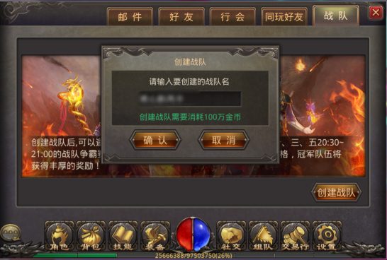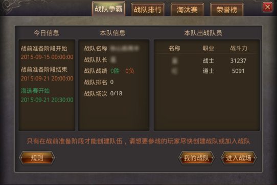 2015年9月11日 0:00 ——2015年9月21日 20:00 期间,凡等级达30级的玩家可在社交-战队界面中花费100万金币创建战队,成功创建后系统自动将战队列入报名名单中。