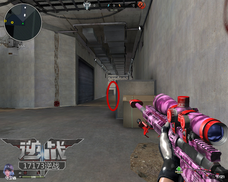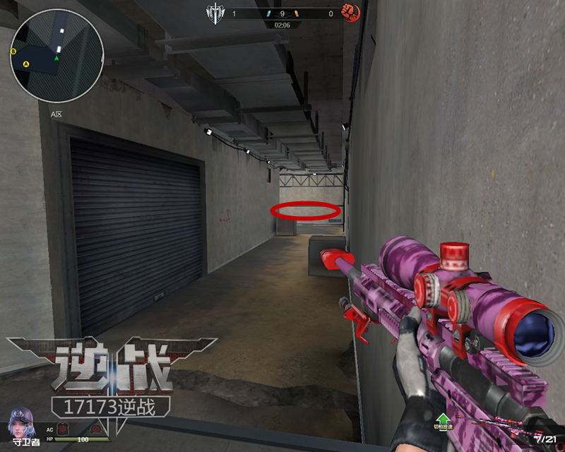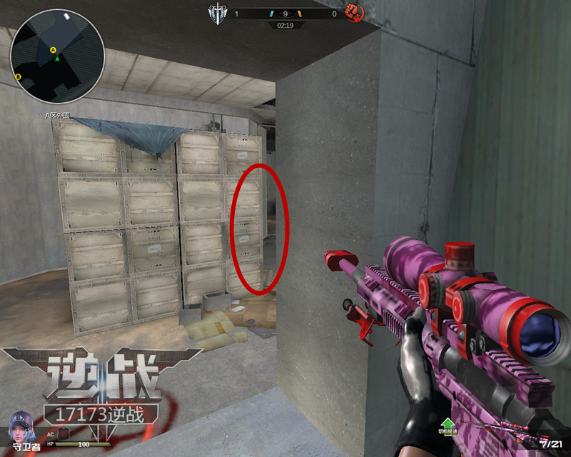狙击点位二就是A点A大道的交火集中地了,作为守卫者通常可以先于突击者早那么一点点时间,所以重生后可以直接来此处进行狙击抢点,就算自己的出生点位不理想,也可以第一时间打个闪光扔过去再过来也无妨。值得注意的是,红圈部分往往也是出现狙击的地方,所以A大通常是这张地图里最容易遭遇对狙的地方,如果对自己反应比较自信来此处是一个比较适合的选择。