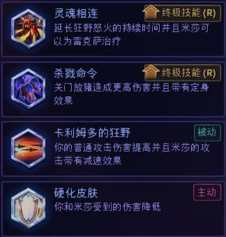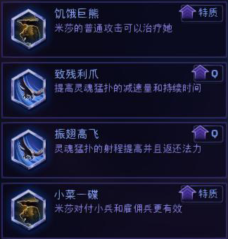 灵魂相连:单挑很给力的天赋,如果米莎自己也能吸血就非常完美了。一般情况下优先级不如硬化皮肤。