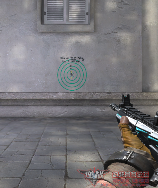 两张截图分别是在改版以后,安装消音器和没有安装消音器的弹道情况,个人觉得没有消音器的情况下弹道稍微集中点,但是不论是否安装消音器扫射出来的弹道都是标准的T字形弹道,注意压枪是关键。