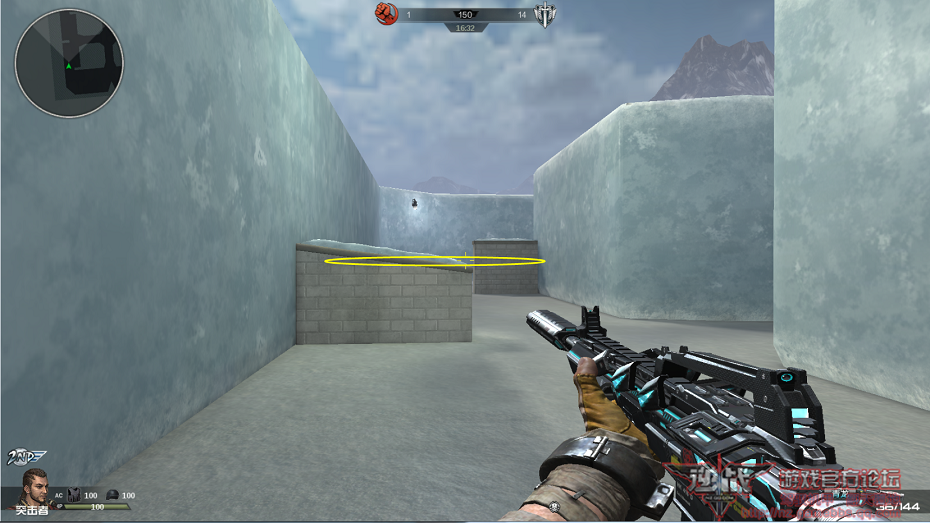 3、《冰/雪世界》可以说是青龙的主场,本人打该图必用青龙,黄圈所示的位置是爆头线的位置,可以充分的进行观察和穿射,同时能够有效的观察敌方易拉罐的轨迹,从而进行规避,但是需要注意中路跑出来的亡命之徒,总的来说冰/雪世界的左右两条线的是青龙的天下。