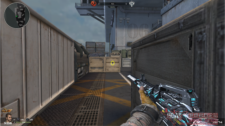 5、《航/空/母/舰》突击者的左路(保卫者为右路)有大量木箱,地形较为复杂,经常有人蹲在木箱子后面阴人,如果你拿的青龙就可以随意穿射木箱,不用担心威力过小的问题。黄圈位置是我给大家推荐的一个不常用的穿射点(绝对有效)。