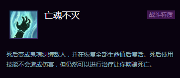 这是骷髅王的被动技能,死后不会回到泉水,可以以幽灵形式逛地图,并且可以防QW两个技能,不会照成伤害,但是其他效果还在,复活可以再幽灵所在的地方复活,在中途回血会加快复活速度。