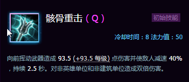 一个扇形AOE,打小兵可以有双倍伤害,也就是说,骷髅王带线变得非常快,我们在讨论英雄的时候,带线能力,是个很重要的指标,最重要的是,这个技能可以减速2.5秒。