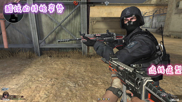 此外就是持枪的酷炫姿势和本身的流线造型,朱雀这把枪并没有ACE32那样的高科技感觉。也没有12气锤那样的叛逆喷漆,枪身本身具有非常顺手的流线造型,在简而不凡的枪身上点缀有亮光点,也因此朱雀在换弹和切枪的速度非常快的。