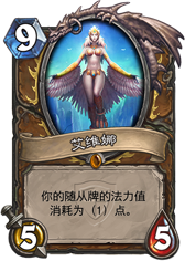 av娜这张牌首先效果是吊炸天的,所以9费55的身材也是能够接受了。墙德应该是和av娜最契合的卡组了,但是,关键来了,9费太慢了,天梯还是普遍的毒瘤多,机械法,奴隶战,中速猎,佛祖骑,等等,对于墙德来说,都不是优势对局。