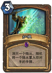 3费,消灭一个随从,随机给对手一张随从牌。我们对比一下萨满的呱,和法师的咩,这张牌缺有负面效果。